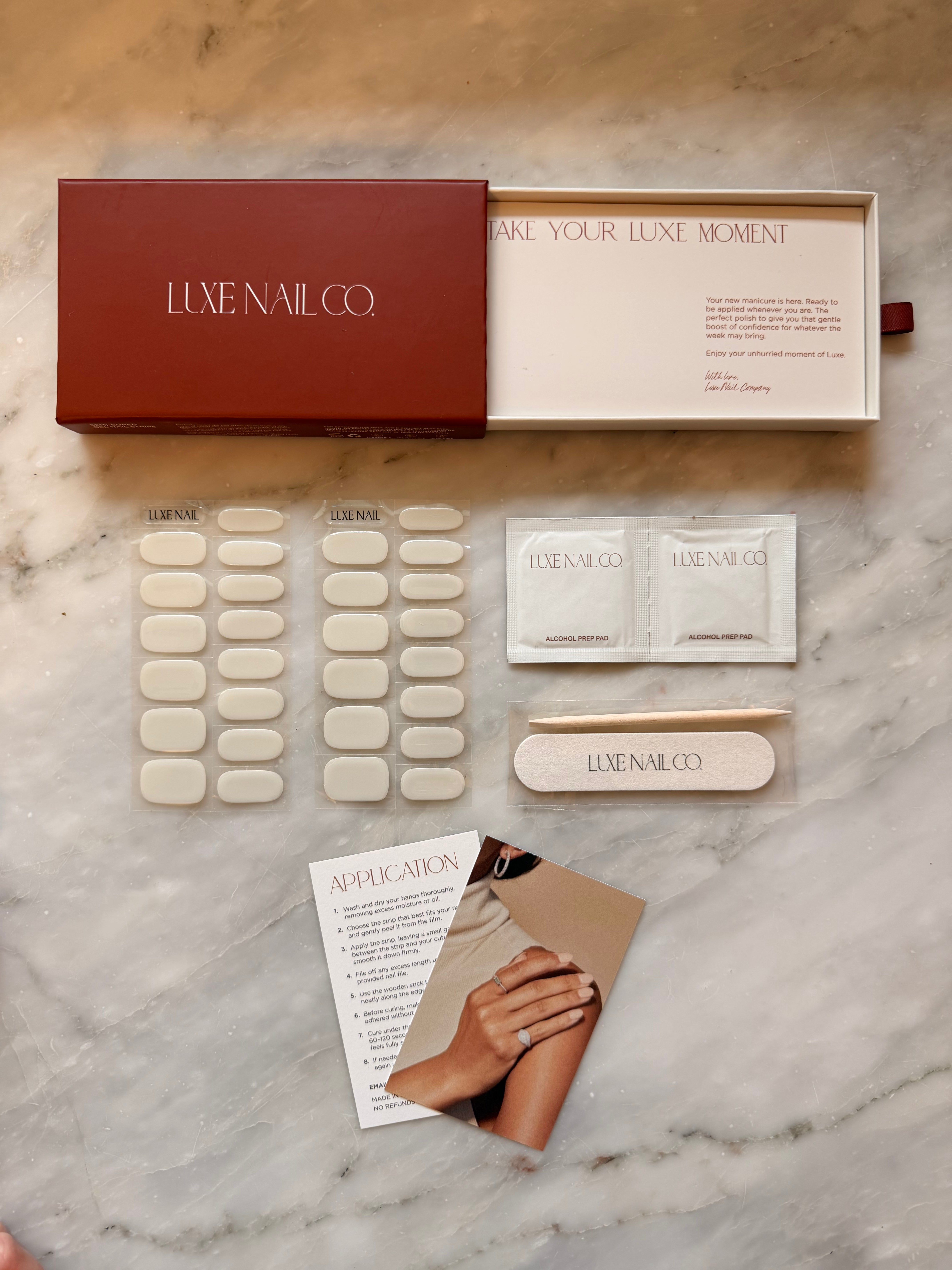 Ensure the strip is fully adhered, then cure under the Luxe UV/LED lamp for 60–120 seconds.